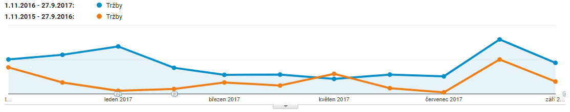 Dlouhodobým plánem je zdvojnásobení celkového obratu ve srovnání s rokem 2016, a to nejen na internetu. Jak se nám prozatím společné snažení daří znázorňuje graf níže