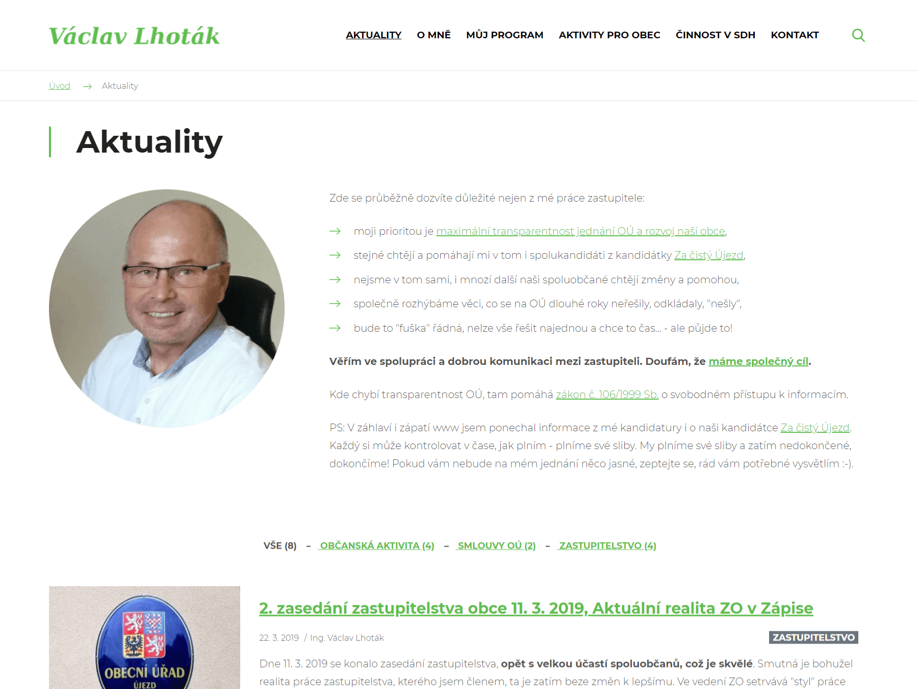 Pro pana Ing. Václava Lhotáka, jakožto kandidáta ve volbách do obecních zastupitelstev 2018, jsme vytvořili zbrusu novou webovou prezentaci.