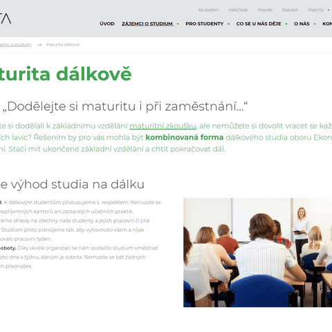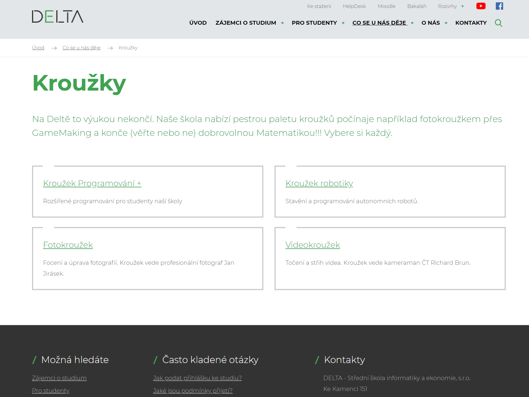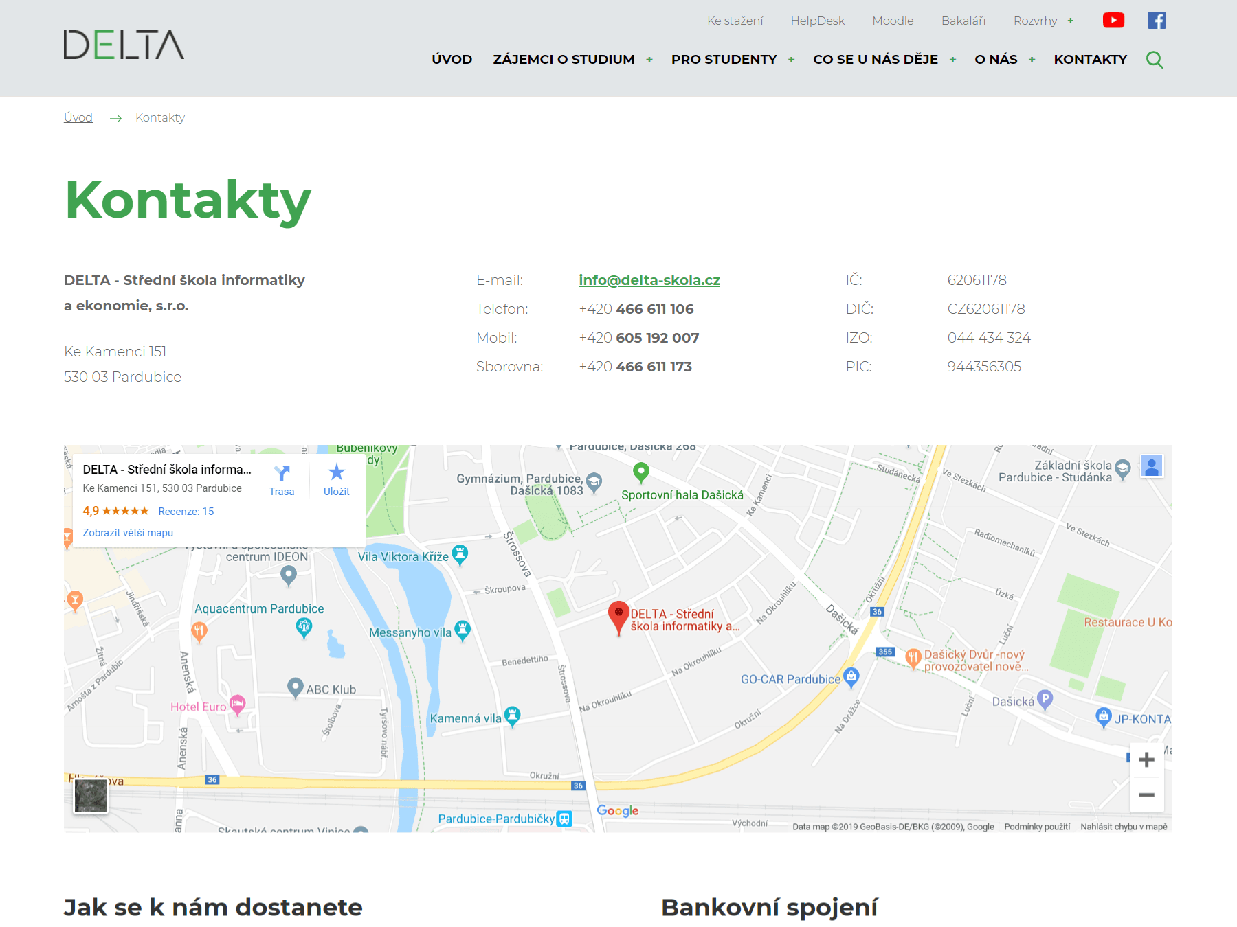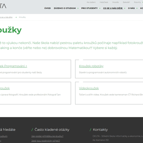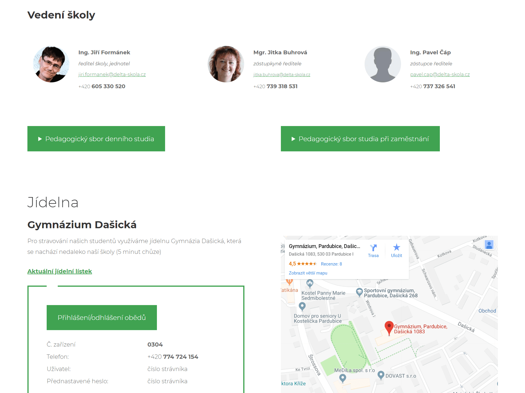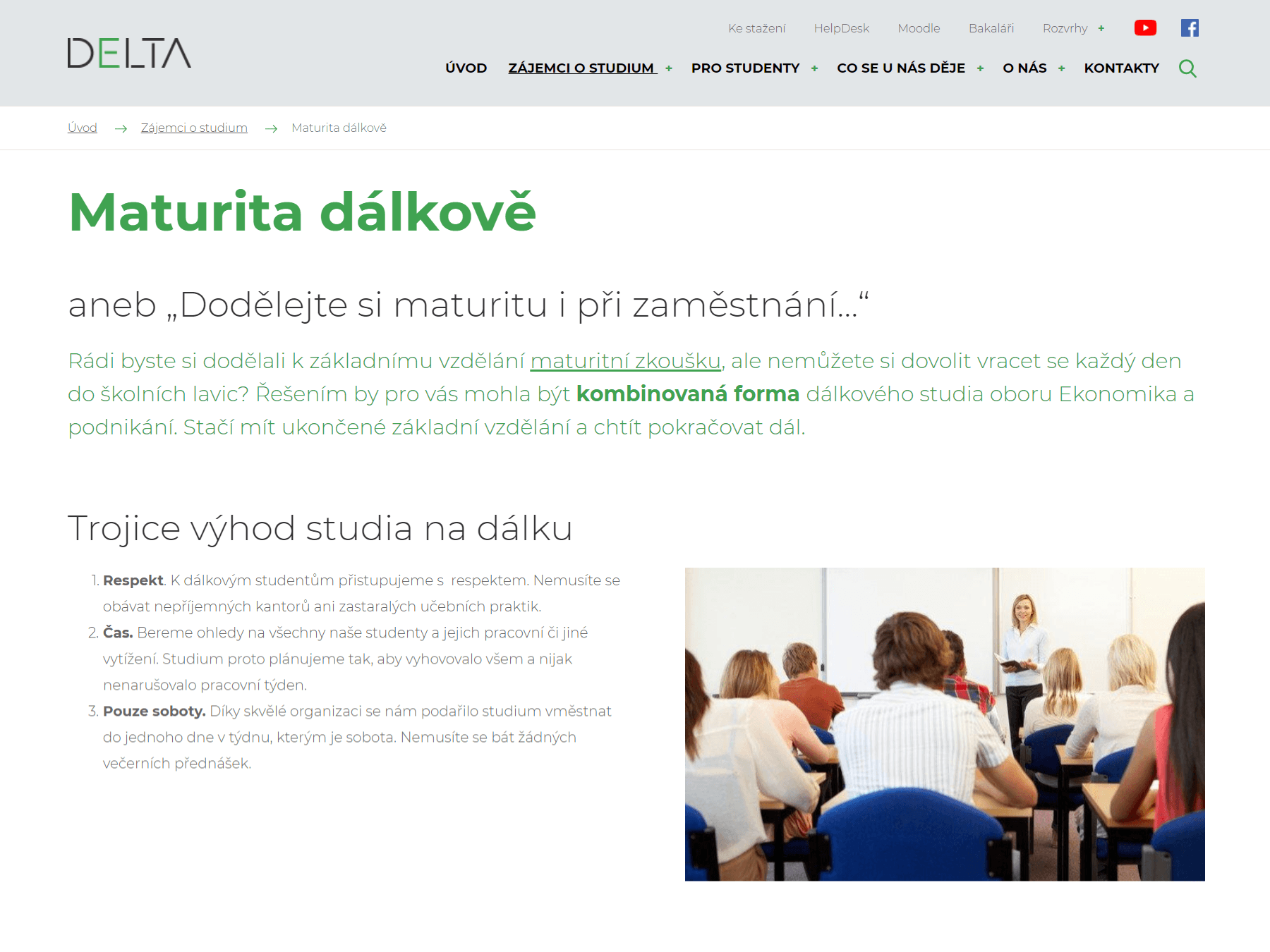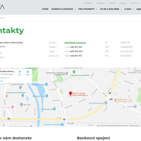 Nové webové stránky pro střední soukromou školu DELTA v Pardubicích
