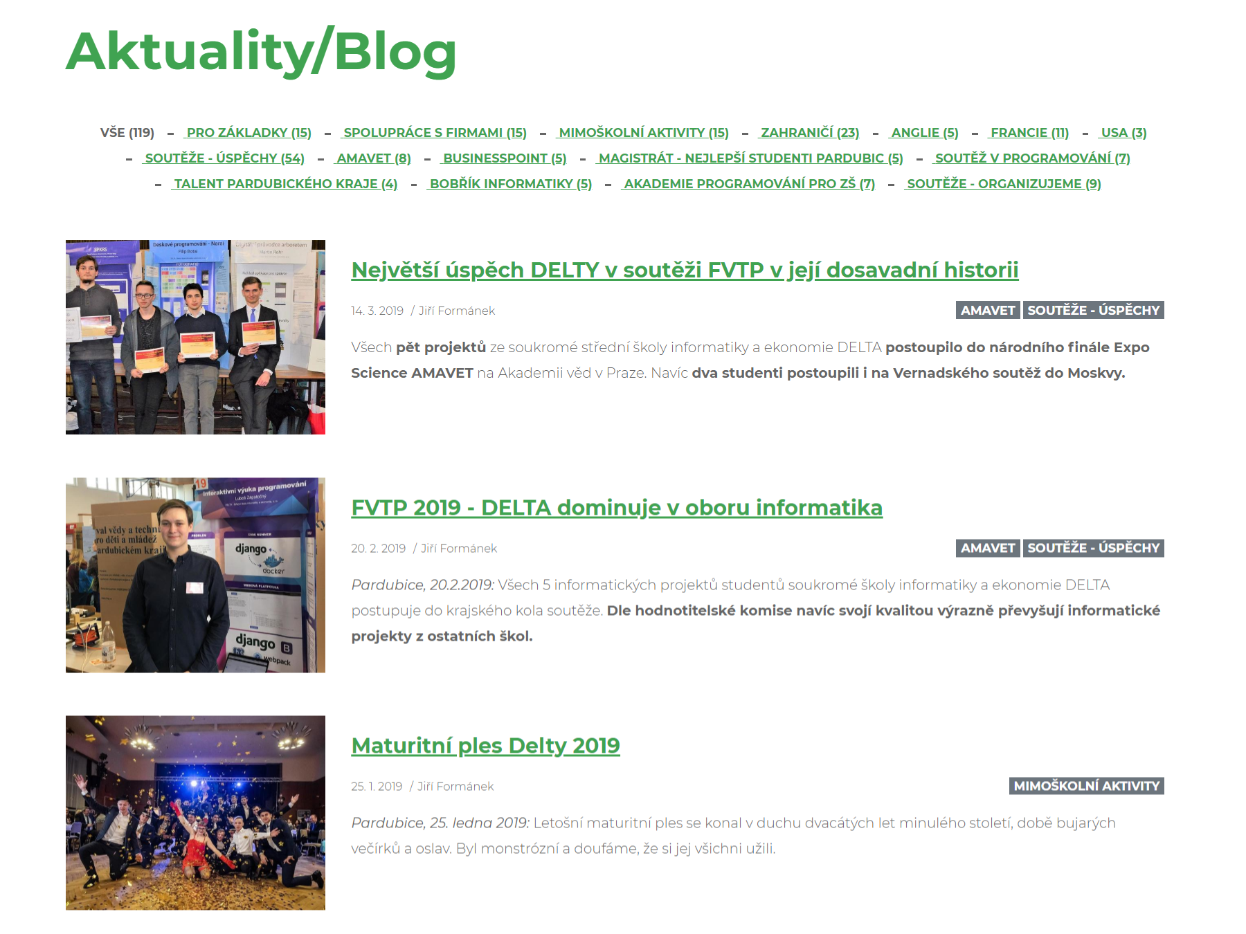 Spojili jsme se s ředitelem školy a domluvili se na vytvoření a zrealizování nové webové prezentace. Obsah webu DELTA pak hravě naplnil sám pan Ing. Formánek díky naší zcela intuitivní a snadné administraci.