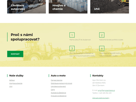 Společnost Agro Žamberk z Žamberka nám dala svou důvěru a tak jsme pro ni mohli vyrobit novou webovou prezentaci, která přehlednou formou představuje její služby a činnosti. Web naleznete na adrese www.agrozamberk.cz.