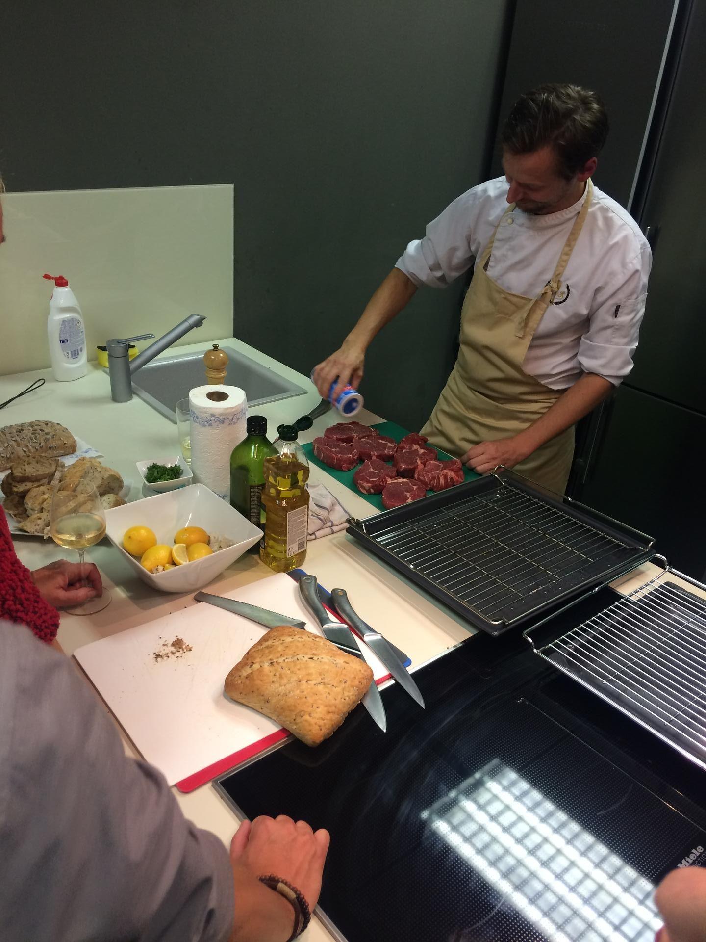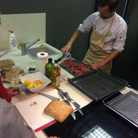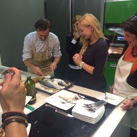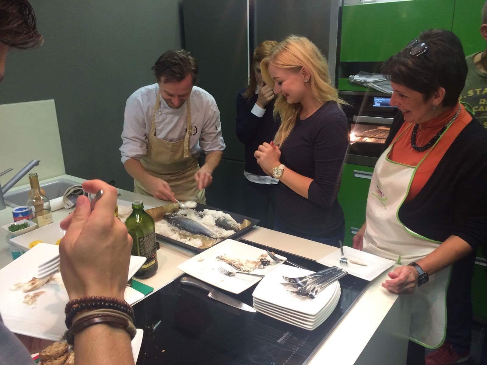 Během večera jsme měli možnost sledovat a učit se od šéfkuchaře Miloše Linharta. Připravili a ochutnali jsme předkrm crostini s toskánskou játrovou pomazánkou. Naše očekávání předčili hlavní jídla jako např. cozze alla marinara (slávky) či šafránové risotto. Jako dezert jsme si připravili neodolatelné cantuccini.