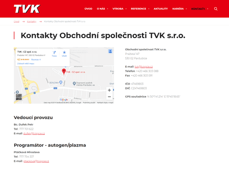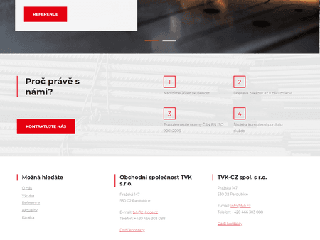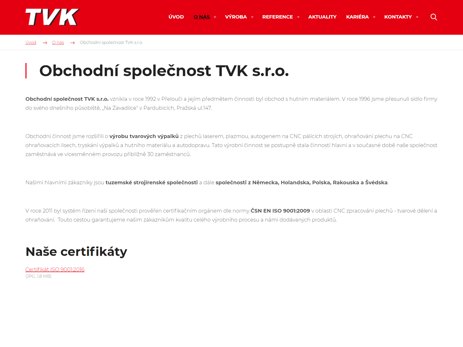 Společnost TVK z Pardubic nám dala svou důvěru a tak jsme pro ni rádi vyrobili novou webovou prezentaci na míru, která přehledně představuje její služby a výrobní sortiment. Web můžete nalézt na adrese www.tvk.cz.