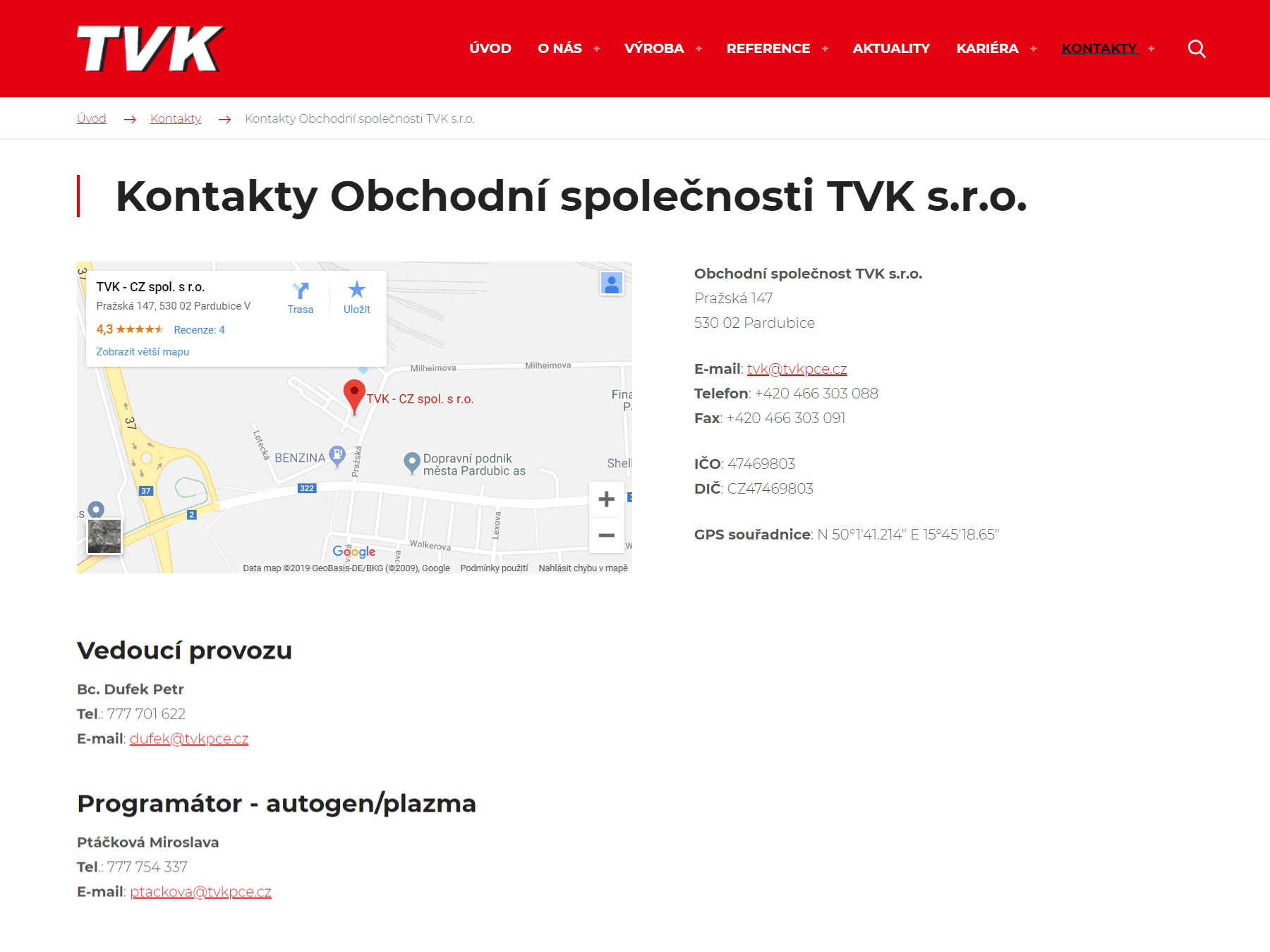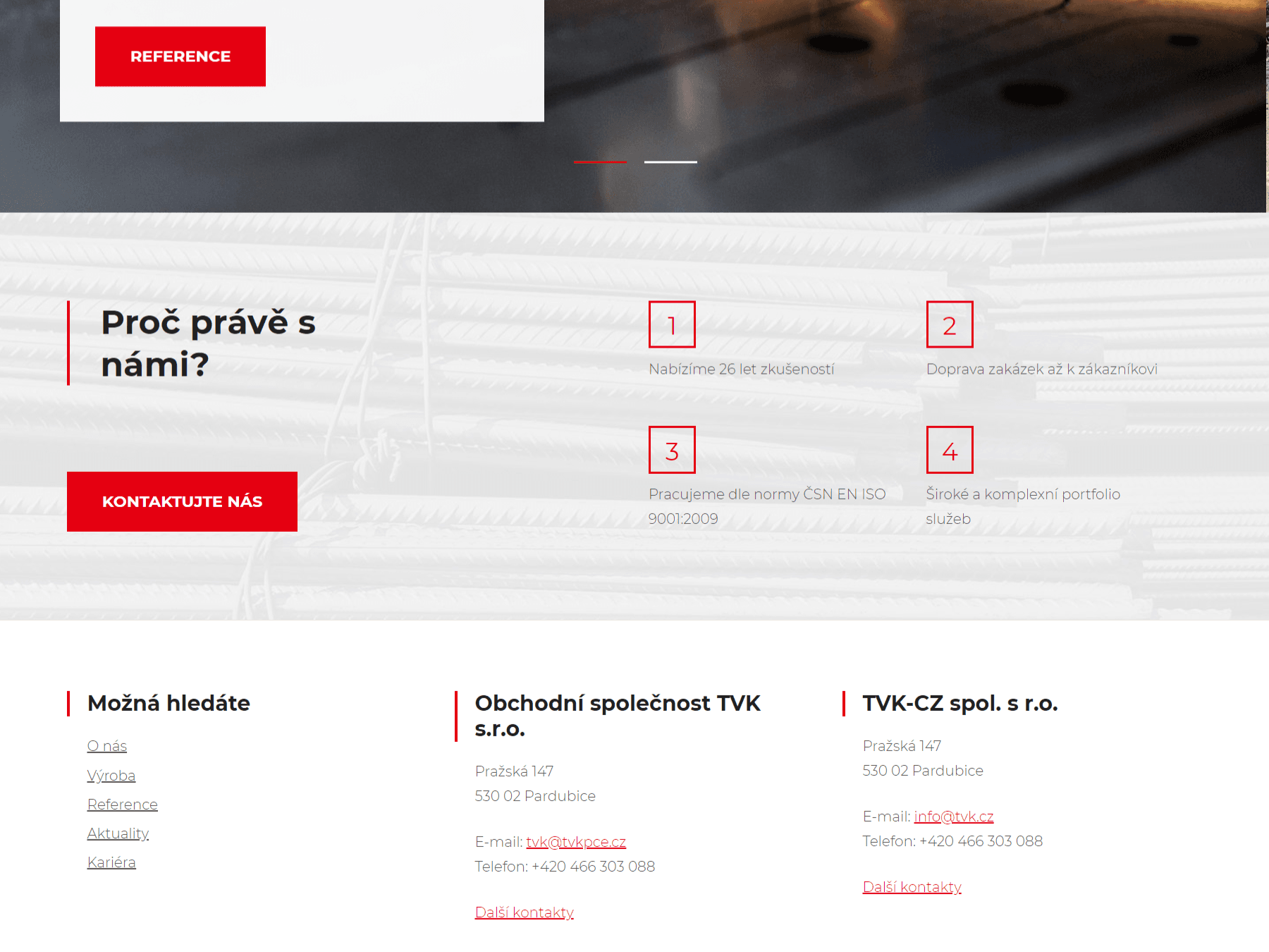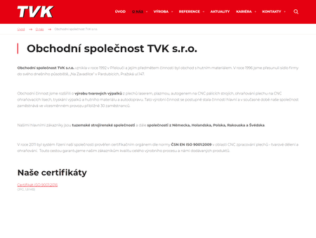 Obchodní společnost TVK, s.r.o. nás oslovila s poptávkou na nový web. Příležitosti jsme se chopili a vytvořili webovou prezentaci na míru.